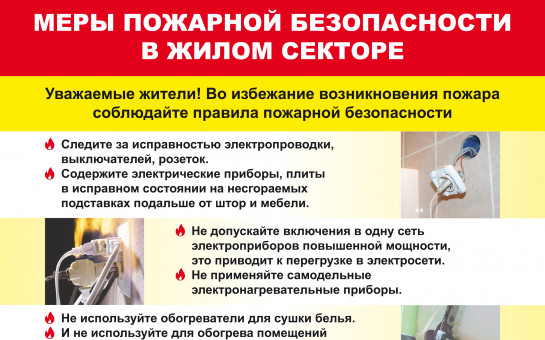 4. Следите за исправностью электропроводки, не перегружайте электросеть, не допускайте применения самодельных электроприборов и «жучков».